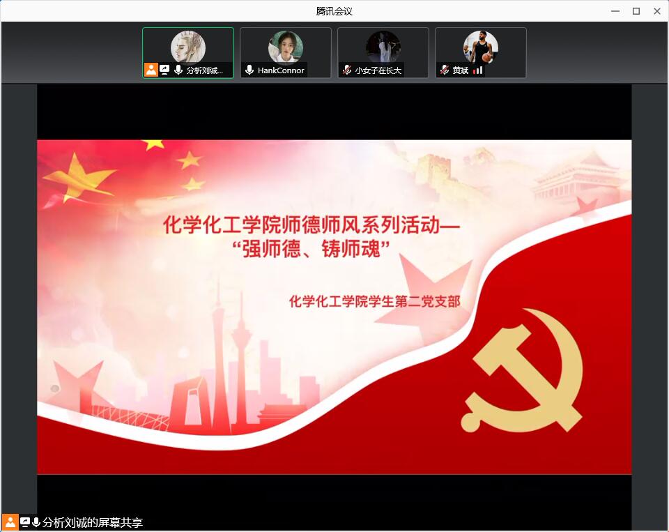 为深入学习贯彻习近平总书记全国教育大会及教师队伍建设、师德师风建设重要讲话精神,贯彻落实全国、全省高校思想政治工作会议精神,全面系统地加强公司师德师风建设工作,进一步推动公司师德师风建设,提高公司员工第二党支部全体员工党员的思想觉悟,真正弘扬“师德为先”,践行“学高为师,身正为范”的师范理念。2022年1月14日下午,员工第二党支部全体党员同志于腾讯会议线上开展了 “强师德、铸师魂”活动,由员工第二党支部书邓钰老师主持。