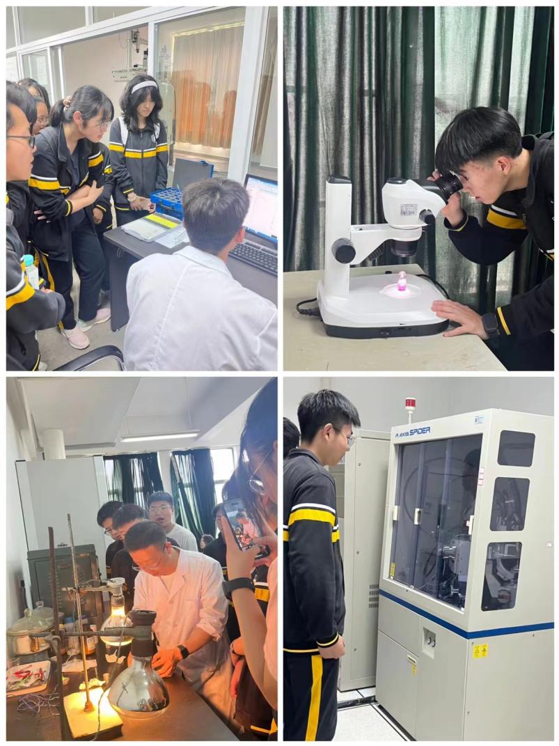 此次科普实验系列活动内容丰富,主要分为实验室参观及科普实验两个部分。同学们参观了核磁共振仪、X-射线单晶/粉末衍射仪等大型仪器,张金老师为同学讲解了仪器原理及应用,志愿者向同学们演示了实验操作并进行了互动,同学们踊跃发言,提出了许多有趣的问题。在科普实验环节,王帮进老师首先展示了改进的“焰色反应”实验、随后带领同学们完成了“水中花园”“天然酸碱指示”两个趣味实验。