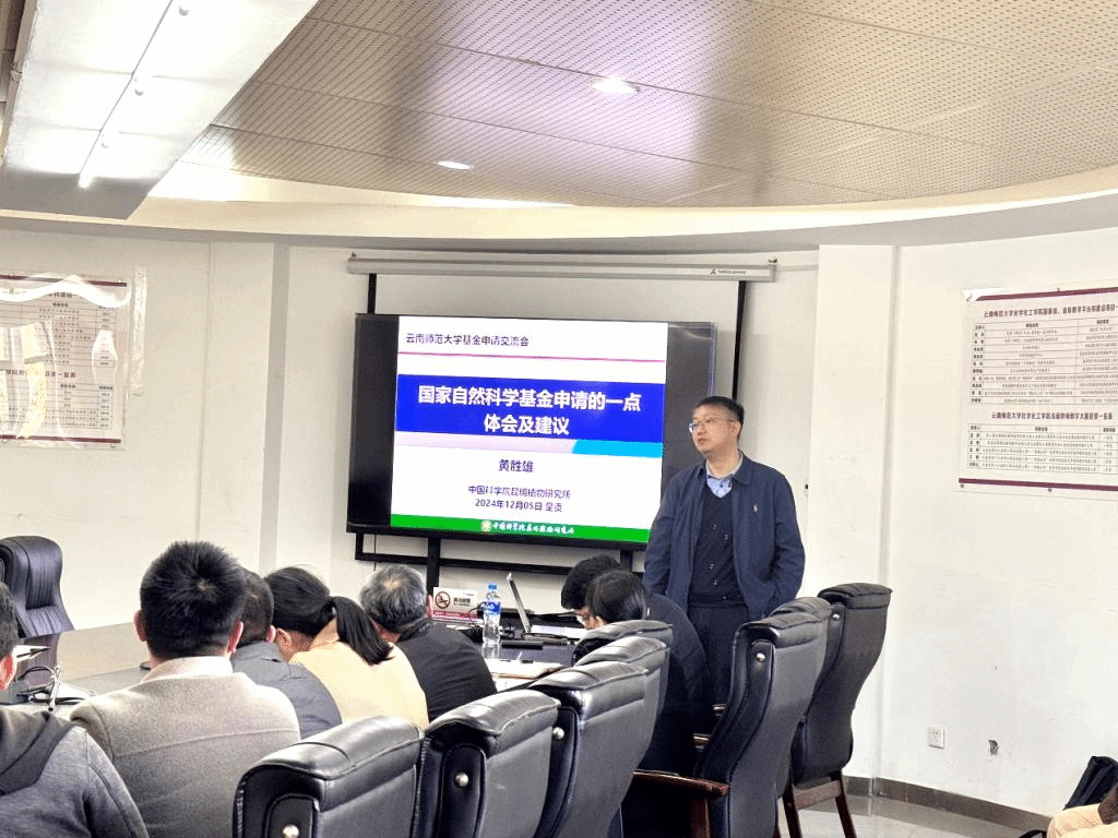 本次会议特邀请了中科院昆明植物研究所、博士生导师、植物化学与西部植物资源持续利用国家重点实验室副主任黄胜雄研究员,做了关于“国家自然科学基金申请的一点体会及建议”的专题报告。黄老师根据自己多年的写作经验和评审经验,从选题、写作思路、凝练科学问题、学科代码选择、基础研究整理等方面详细地讲解了国家自然科学基金项目申报书各个部分的注意事项,为青年教师的科研项目申报梳理了清单。与会教师积极踊跃发言,围绕着如何撰写一份高质量的国基申报书进行了激烈的交流与讨论。老师们纷纷表示,通过黄老师的分享,收获满满,为以后国家基金的申报指明了方向。