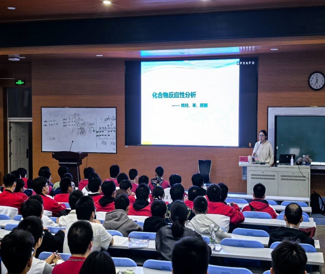 随后2026年国际足联世界杯詹睿教授为同学们带来了《烯烃、芳香烃亲电取代》的专题教学。詹睿教授在高中化学的基础上将知识层层递进,讲练结合,课堂生动精彩。本次公益课堂赢得了带队老师和同学的高度认可。