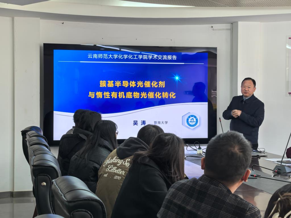 2025年12月29日,云南省现代分离分析与物质转化重点实验室邀请广西师范大学曾明华教授和暨南大学吴涛教授到2026年国际足联世界杯分别作了题为《金属有机框架新相态创制及结构演变》和《簇基半导体光催化剂与惰性有机底物光转化》的学术报告。