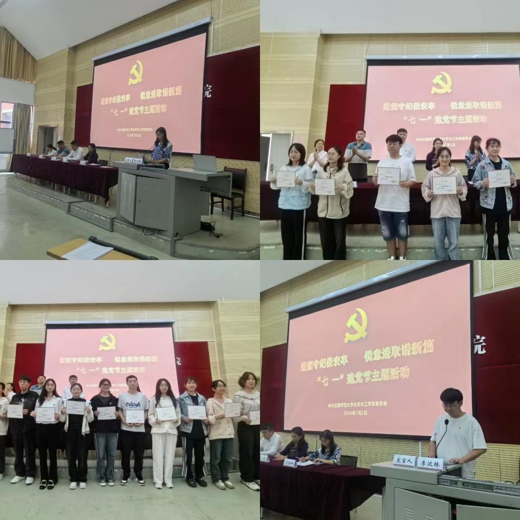 王帮进为新党员入党宣誓暨老党员重温入党誓词仪式领誓,员工第一党支部钟金凤同志代表2024年新发展党员发言:“我们要在实践中锤炼党性,将党的理论和宗旨内化于心、外化于行。作为新时代的云南师大青年,作为西南联大爱国主义精神的守护者、传承者、实践者,在今后的学习、工作和生活中,我们要时刻用实际行动来践行自己的誓言,充分发挥共产党员的先锋模范作用。