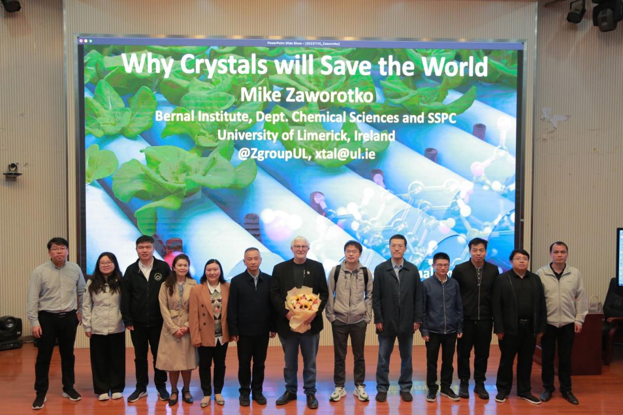 报告中,Zaworotko教授介绍晶体材料设计的历史背景、晶体材料设计原则、晶体材料在空气取水、直接捕集二氧化碳、能源气体的分离纯化和储存等方面的应用,为在场师生呈现了一场精彩的高水平学术讲座。