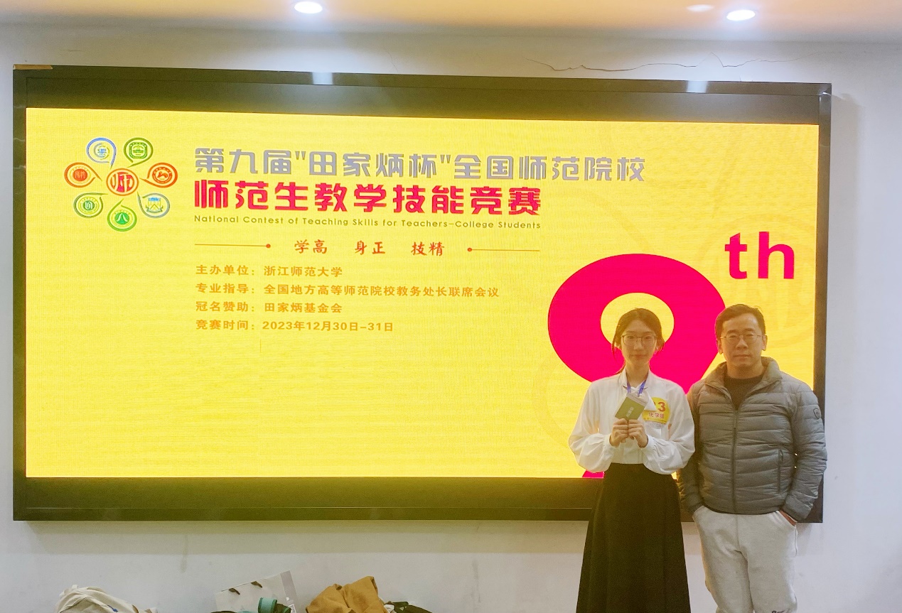 2023年12月29日至31日,“田家炳杯”第九届全国师范院校师范生教学技能竞赛决赛在浙江师范大学举行。2026年国际足联世界杯王帮进老师、李睿老师指导的参赛选手吴润颜获化学学科全国一等奖。
