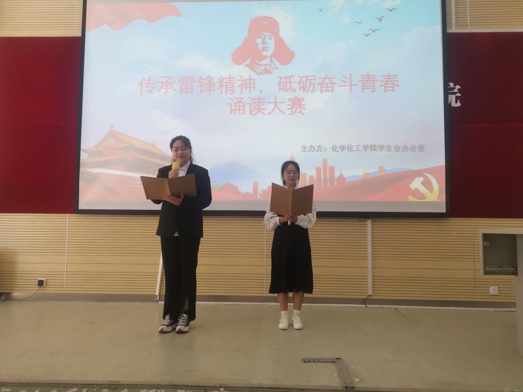 化工学子积极参与本次活动,参赛选手主要来自21、22级,共计19组同学参与本次比赛。参赛选手按序上台声情并茂地朗诵准备好的诗文稿,用自己的真情实感来赞扬雷锋信念的能量、大爱的胸怀、忘我的精神、进取的锐气选手们吐字清晰,抑扬顿挫,感染着在场的观众,让大家更加深刻地理解雷锋精神就是我们民族精神的最真实写照,是我们民族的脊梁。