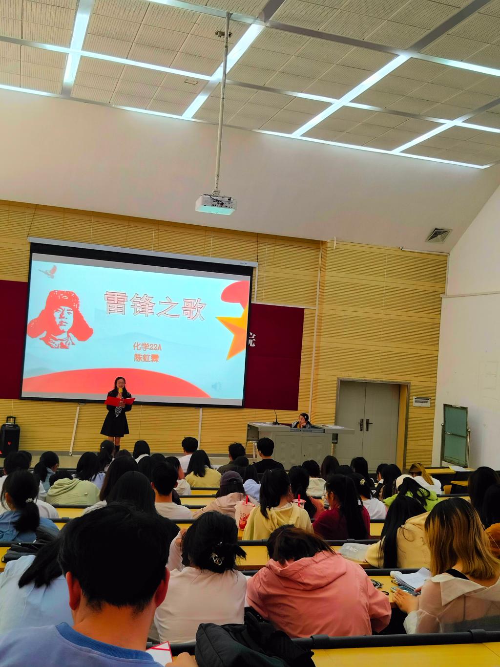 为深入学习宣传贯彻党的二十大精神,弘扬社会主义核心价值观,引导广大师生以实际行动做新时代雷锋精神的积极倡导者、忠诚实践者、有力推动者,4月11日下午14:00,化学化工学院在睿智2号楼110教室举办的“赓续雷锋精神,争做有为青年”朗诵大赛。